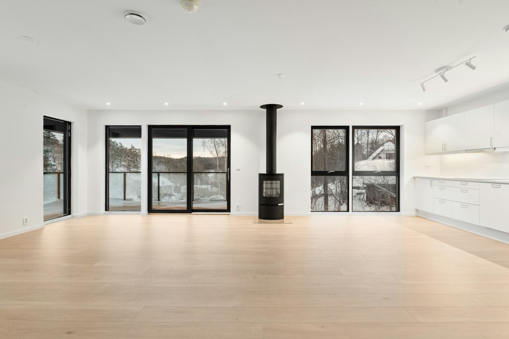 Ved å bruke samme type vinyl i stue, kjøkken og gang får du en naturlig overgang mellom rommene. Det gir ikke bare et estetisk løft, men får også boligen til å virke større og mer helhetlig.
